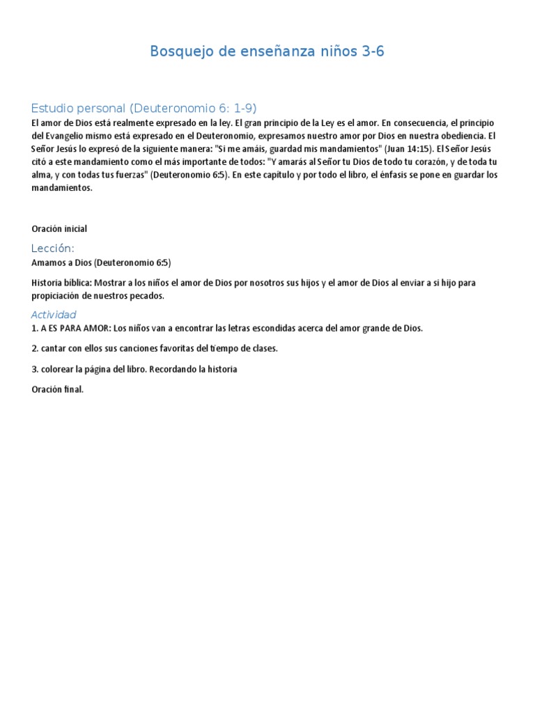 Bosquejo de enseñanza niños 3-6: Estudio personal (Deuteronomio 6: 1-9)